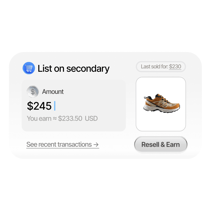 Each customer receives verified ownership at checkout. No QR/NFC scanning, no redemption, just instant connection between buyer and brand.